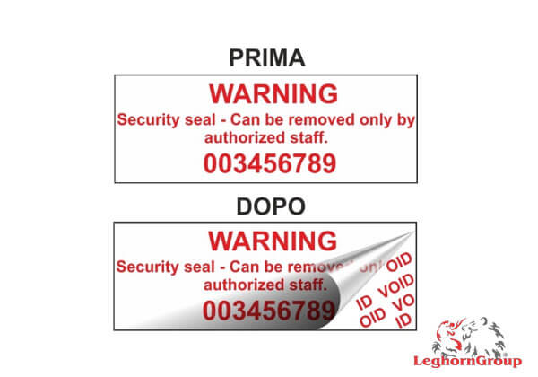 „LEGHORN VOID LABEL” oferă siguranța maximă privind manipularea sau accesul neautorizat lasând un semn permanent de sigilare.