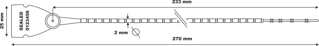 Sigillo di plastica regolabile. Applicazione veloce e sicura. Chiusura con inserto di metallo.