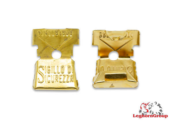 Sigilii pentru cutii si cartoane. Aceste sigilii asigura originea si calitatea fiecarei cutii, si se aplica extrem de usor la legatura fiecarei cutii. Sunt produse din otel sau tabla si sunt disponibile in culoarea materiei prime sau in versiunea galvanizata de culoare galben-auriu. Sunt de diferite masuri, in functie de grosimea legaturii cutiei. Personalizarea poate fi in relief cu cuvintele „Sigiliu de siguranta” sau numele/logo-ul clientului, stampila CEE sau orice alta informatie.