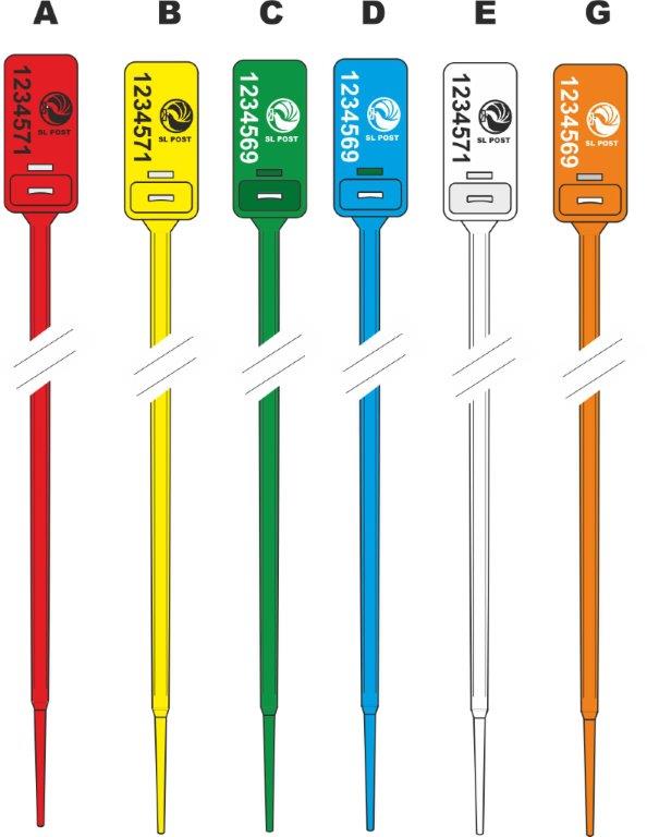 Sigiliu reglabil din plastic. Autoblocant. Aplicare rapidă și sigură. Măsura etichetei: 22×45 mm.